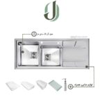 متعلقات سینک اخوان توکار مدل 302 شامل بست و زیرآب، دو عدد تخته برش، سبد، جامایع و میوه شور می باشد