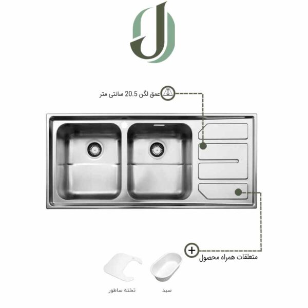 دارای دو لگن نیمه عمیق به عمق 13.5 سانتیمتر و ضخامت 0/7 میلیمتر و نیمه فانتزی است