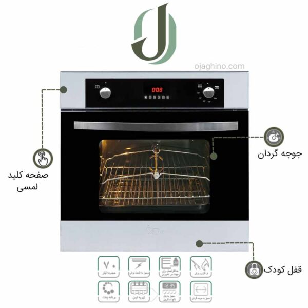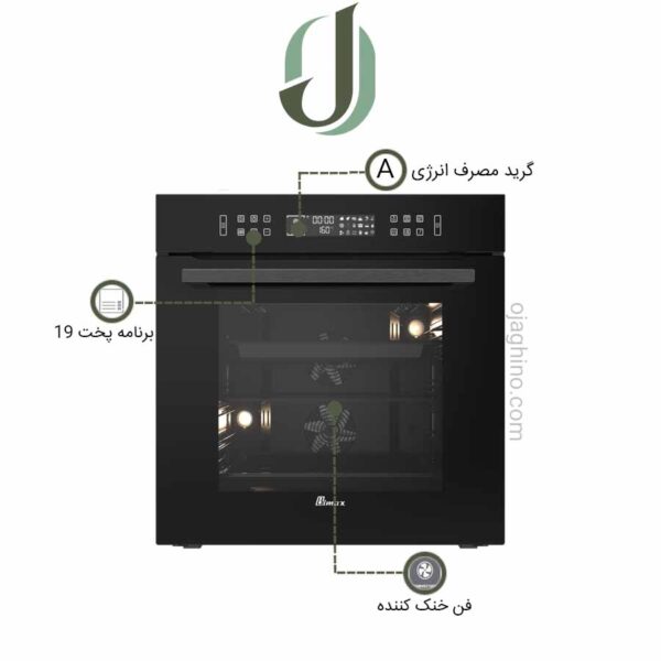این فر دارای 13 برنامه پخت, موتور جوجه گردان, پخت اتوماتیک،لعاب طوسی، درب سه جداره، دو سینی کم عمق و عمیق، سیستم پخت سریع، فن خنک کننده اتوماتیک، ست پیشبند و دستکش، سیستم آرام بند درب و لولا میباشد.