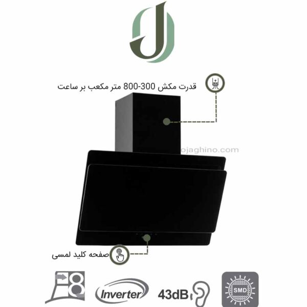 این هود دارای 4 دور موتور و قدرت مکش 800 مترمکعب بر ساعت میباشد.