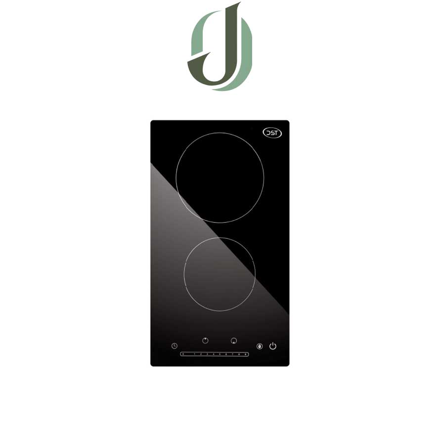 اجاق برقیDSTدوشعله T2V-01 با نمای شیشه مشکی بدون فن خنک کننده میباشد و بصورت توکار قابل استفاده هست.