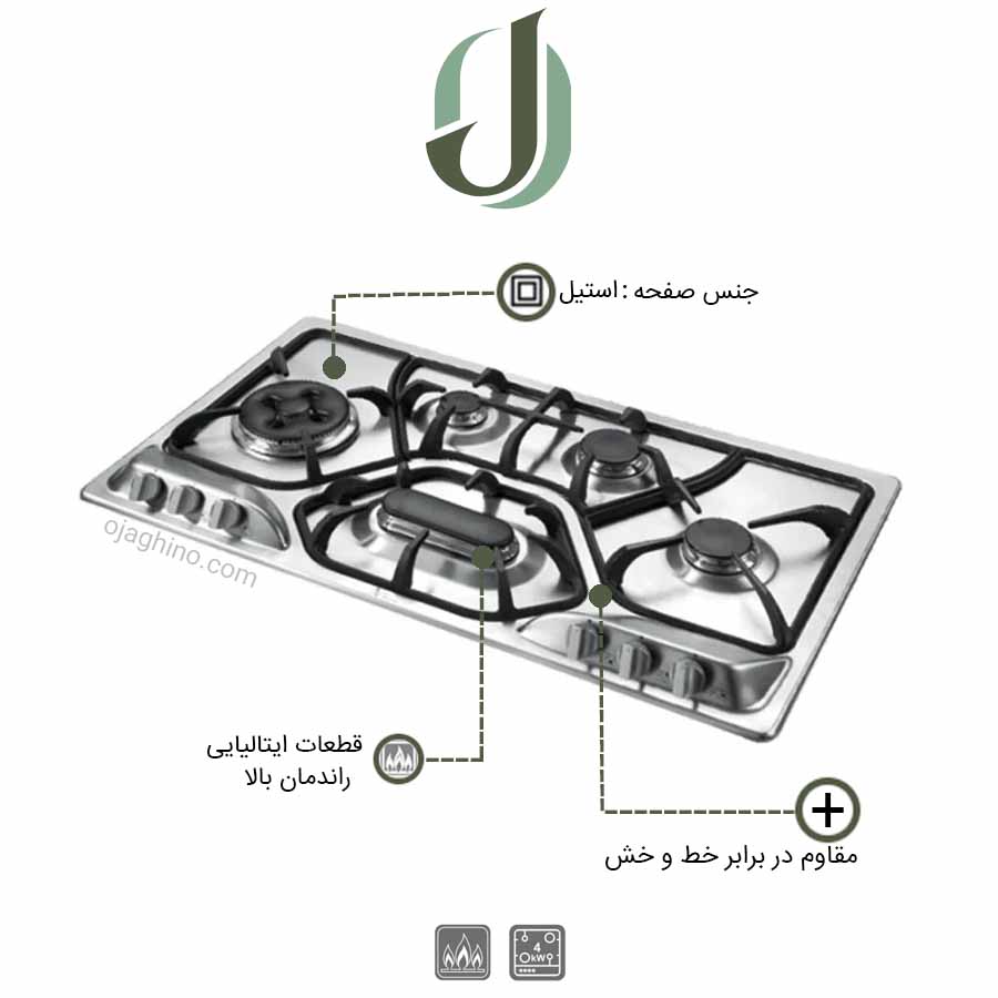 استفاده از استیل ضد زنگ و قطعات ایتالیایی باکیفیت، دوام و طول عمر بالای این اجاق گازها را تضمین میکند.