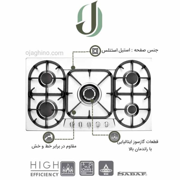 G29 دارای 5 شعله میباشد که 1عدد بزرگ، 1عدد متوسط، 2عدد کوچک و 1عدد پلوپز است.