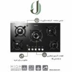گاز رومیزی G5904 شیشه البرز با نمای ظاهری شیشه مشکی دارای یک جلوه فوق العاده زیبا میباشد.