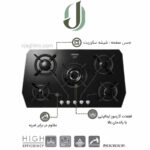 گاز رومیزی G5905 شیشه البرز با نمای ظاهری شیشه مشکی دارای یک جلوه فوق العاده زیبا میباشد.