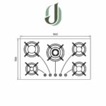 G5908 دارای 5 شعله میباشد که 1 عدد پلوپز و 1 عدد بزرگ و 2 عدد متوسط و 1 عدد کوچک است.