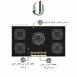 اجاق گاز بیمکث مدل 5087 طلایی با نمای ظاهری شیشه مشکی با فریم طلایی دارای یک جلوه فوق العاده زیبا میباشد.