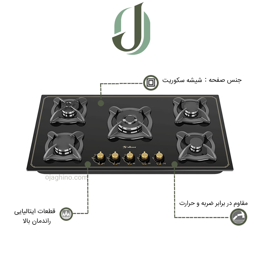 - شیشه با ضخامت 8 میلیمتر سکوریت شده و مقاوم به ضربه و حرارت و طرح کلاسیک