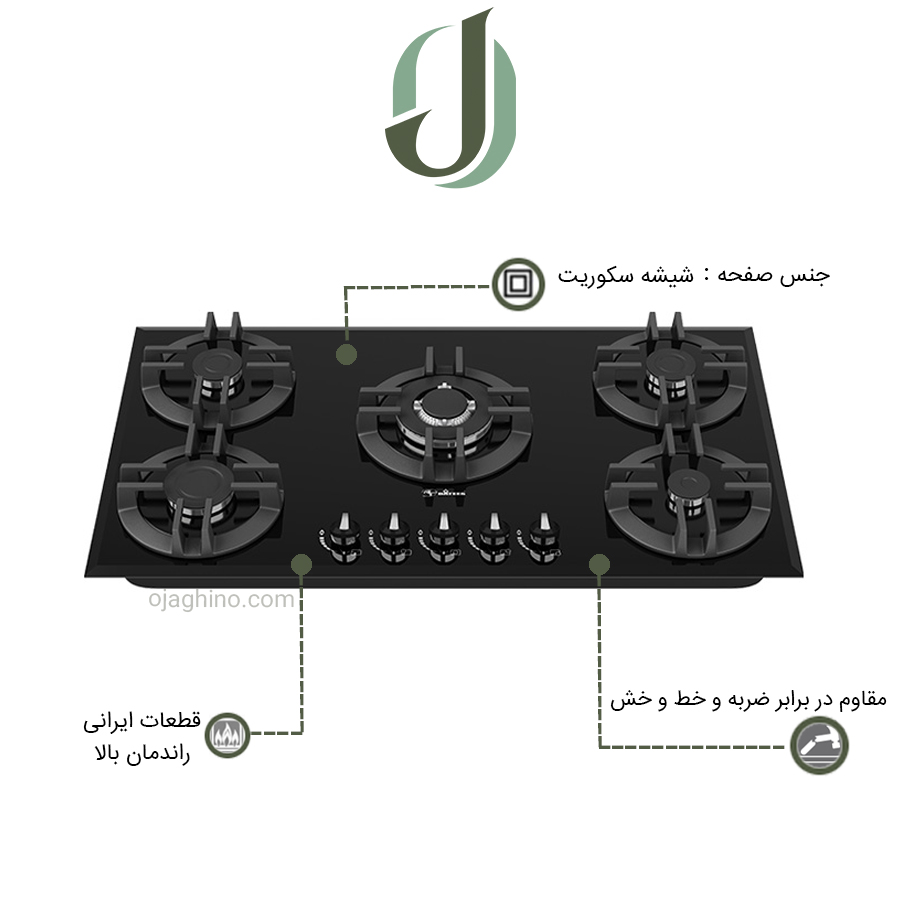 - شیشه با ضخامت 8 میلیمتر سکوریت شده و مقاوم به ضربه و حرارت