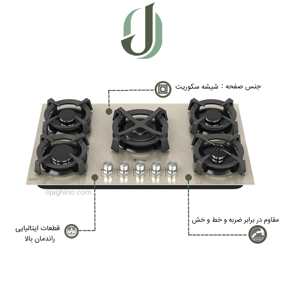 - شیشه Schott ایتالیا با ضخامت 8 میلیمتر سکوریت شده و مقاوم به ضربه و حرارت