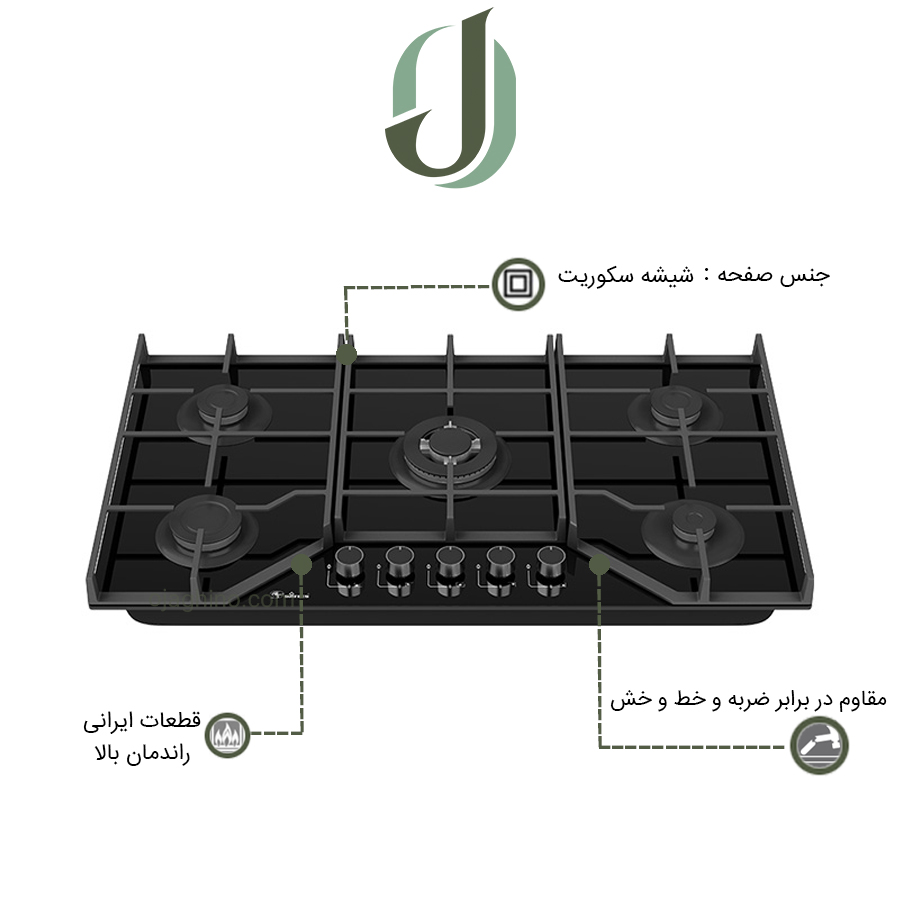 • شیشه با ضخامت 8 میلیمتر سکوریت شده و مقاوم به ضربه و حرارت