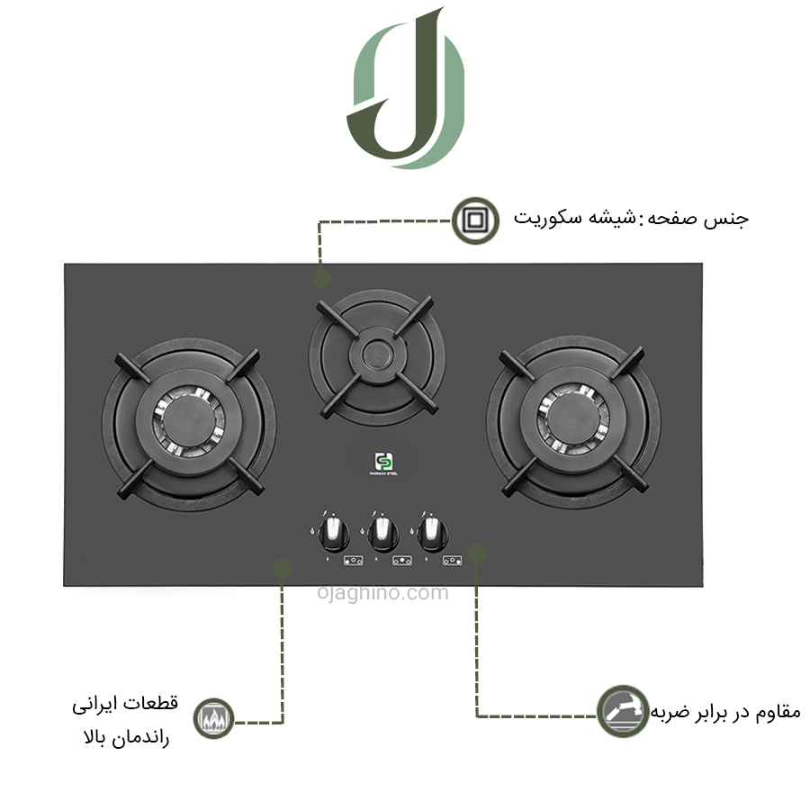 مزایای اجاق گازهای شیشهای پرنیان استیل با قطعات ایرانی :