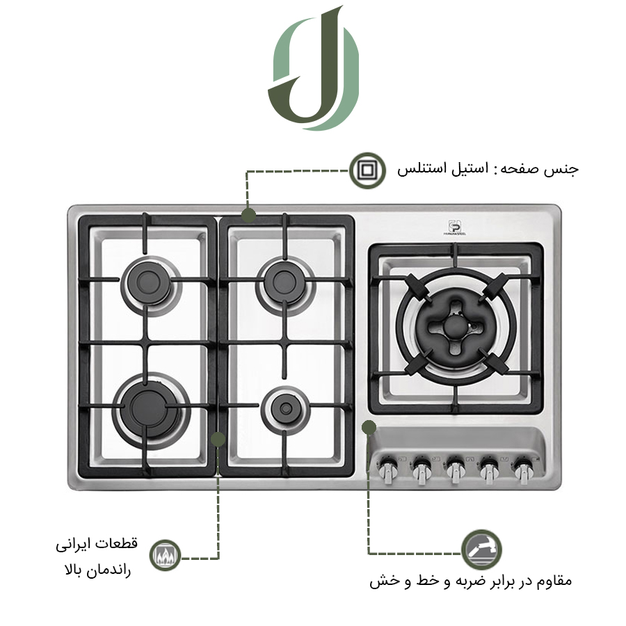 معرفی کلی اجاق گاز پرنیان استیل مدل PB 5102: