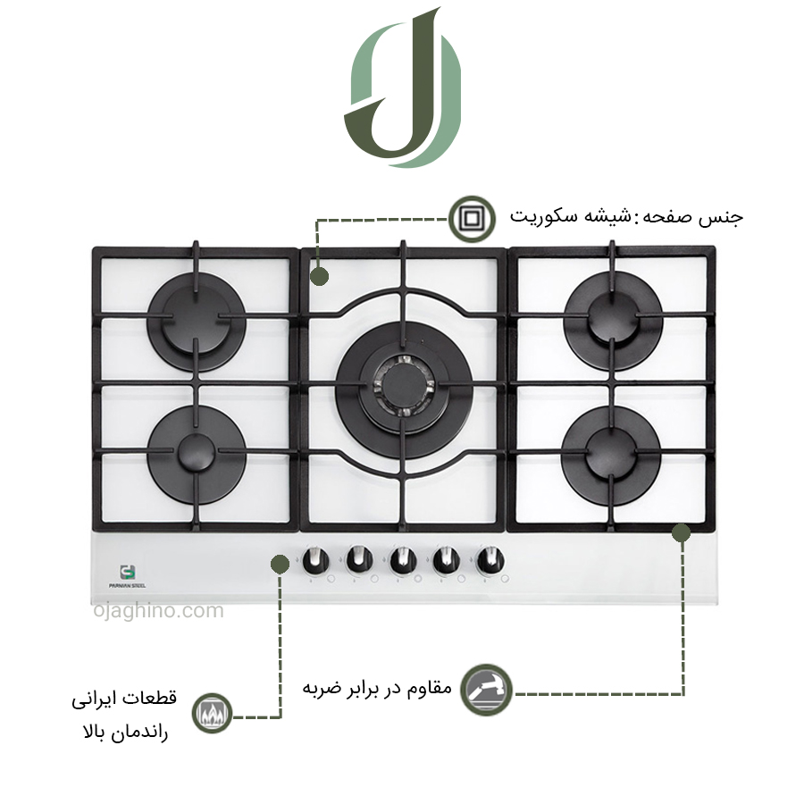 مزایای اجاق گازهای شیشهای پرنیان استیل با قطعات ایرانی :