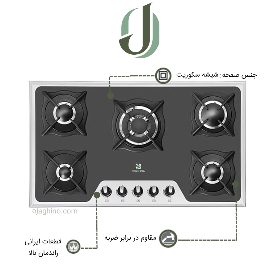 مزایای اجاق گازهای شیشهای پرنیان استیل با قطعات ایرانی :