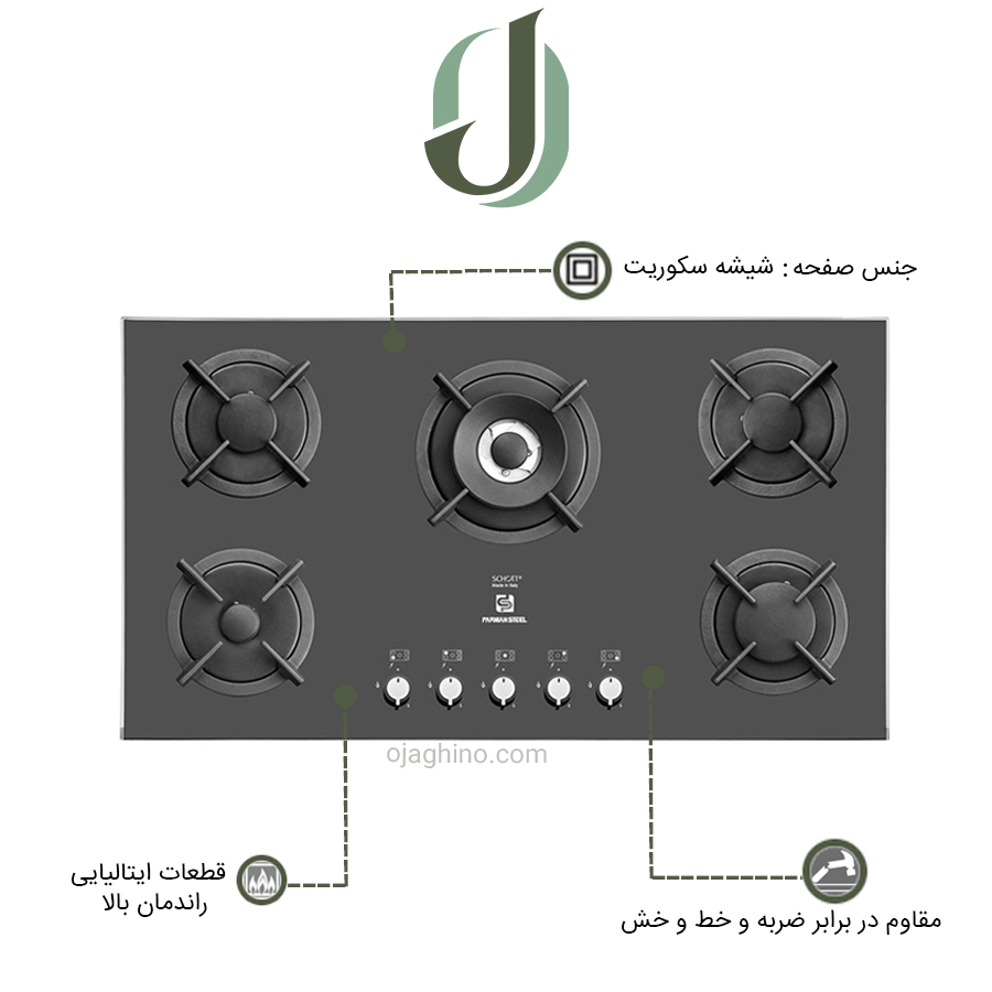 شیشه سکوریت به کار رفته در این اجاق گازها، در برابر حرارت و ضربه مقاوم است