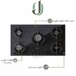 اجاق گاز کن لِئو با نمای ظاهری شیشه مشکی دارای یک جلوه فوق العاده زیبا میباشد.