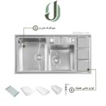 متعلقات سینک اخوان توکار مدل 328 شامل بست و زیرآب، دو عدد تخته برش، سبد، جامایع و میوه شور می باشد