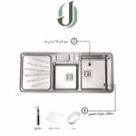 متعلقات سینک استیل البرز مدل 854 شامل بست و زیرآب ، میوه شور ، تخته برش و جامایع می باشد