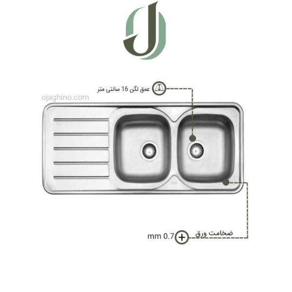 دارای تک لگن نیمه عمیق به عمق 17.5 سانتیمتر و ضخامت 0/8 میلیمتر و فانتزی است