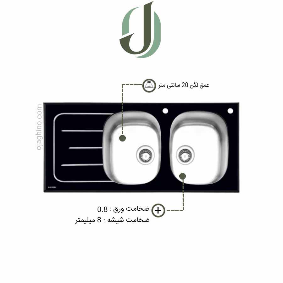 دارای دو لگن به عمق 20 سانتیمتر و ضخامت لگن 0.8 میلیمتر و ضخامت شیشه 8 میلیمتر است.