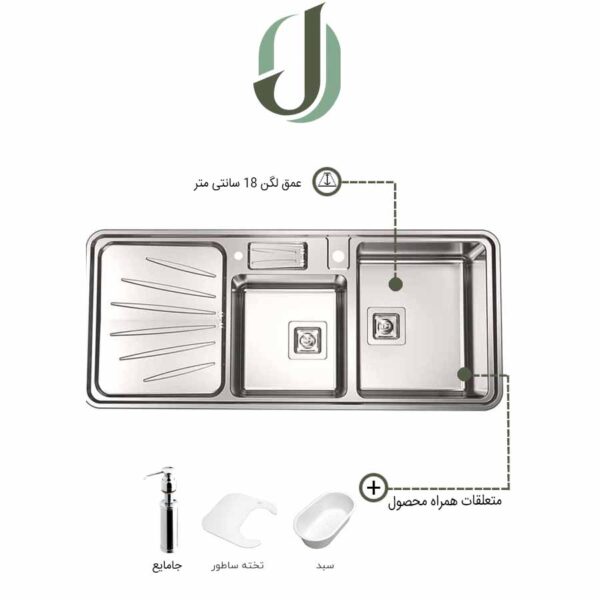 استیل آنتی باکتریال و محافظ در برابر آلودگی، زیرآب استیل که با داشتن آببند به صورت دستی باعث کنترل خروجی آب سینک میشود.