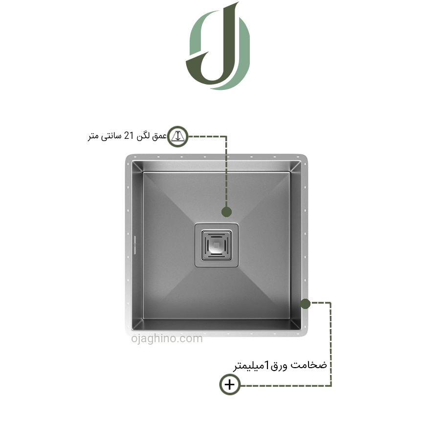 این سینک دارای استاندارد CE اروپا، دارای یک لگن بزرگ به عمق 21 سانتیمتر و متعلقات این سینک بست و زیرآب، ست کامل سیفون می باشد.