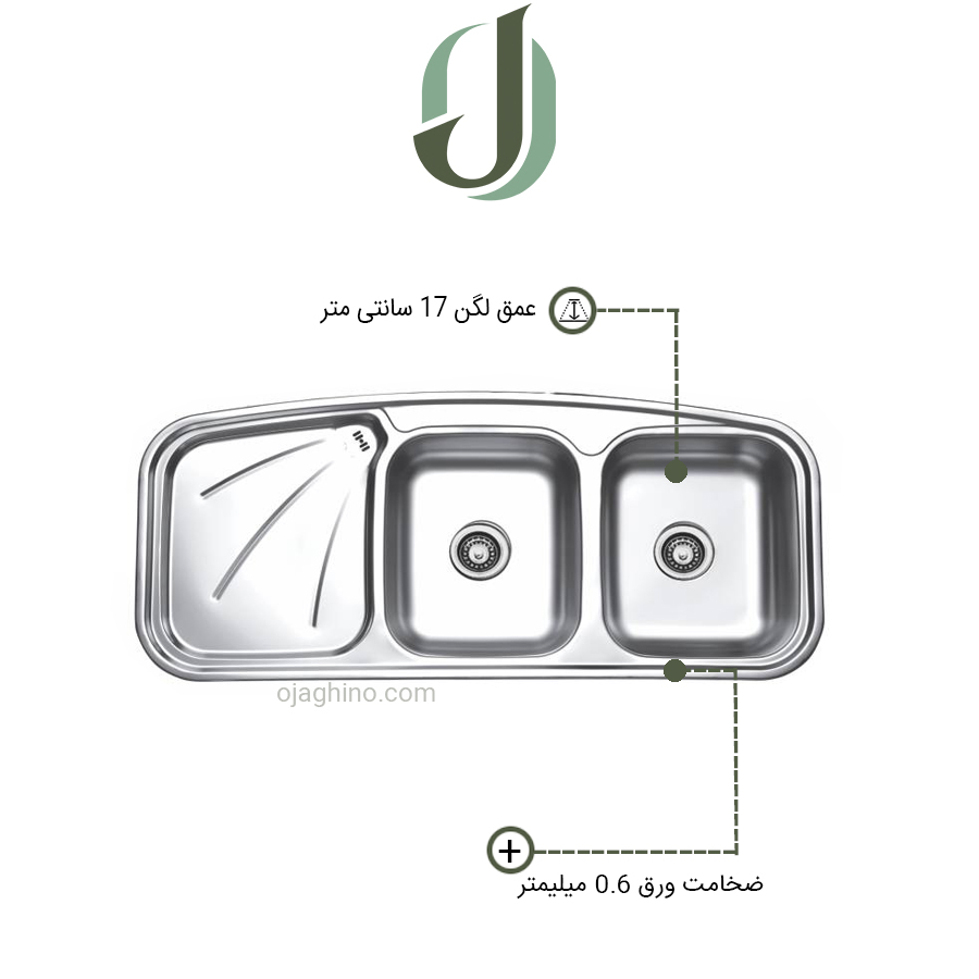 دارای دو لگن به عمق 17 سانتیمتر به ضخامت ورق 0.6 میلیمتر و آبریز سینی میباشد.