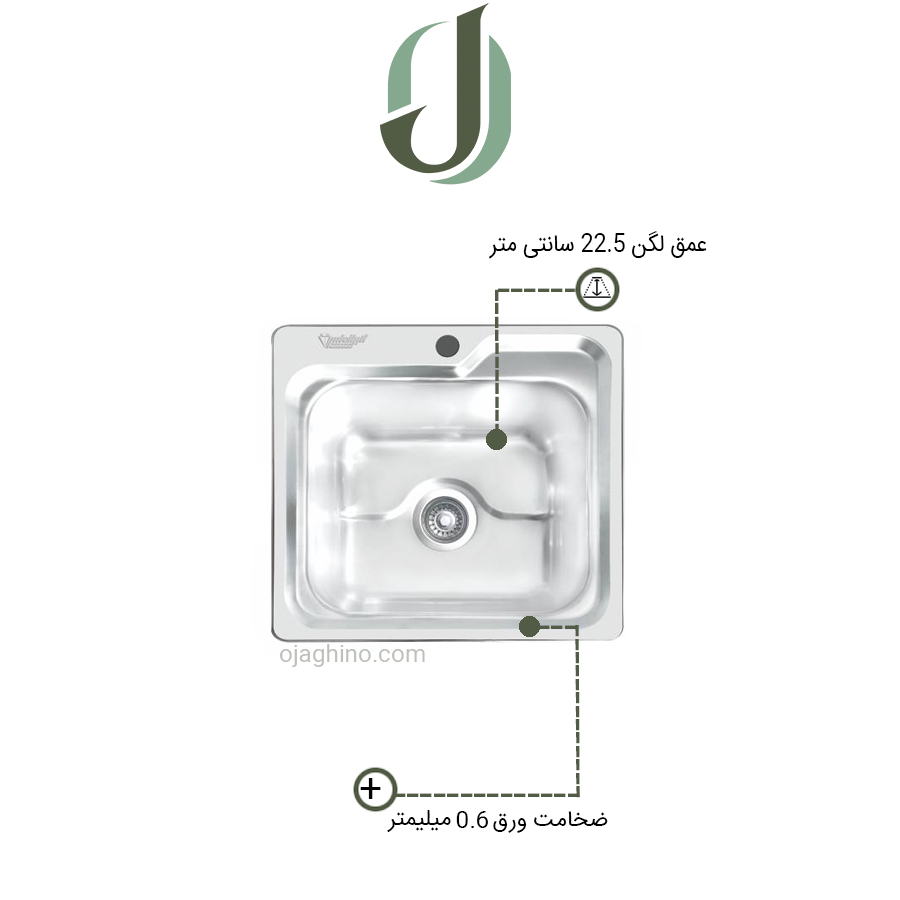 دارای تک لگن به عمق 22.5 سانتیمتر به ضخامت ورق 0.6 میلیمتر است.