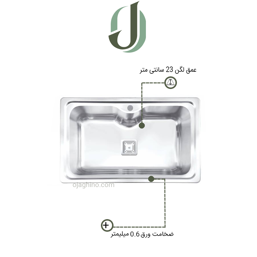 دارای تک لگن به عمق 23 سانتیمتر به ضخامت ورق 0.6 میلیمتر است.