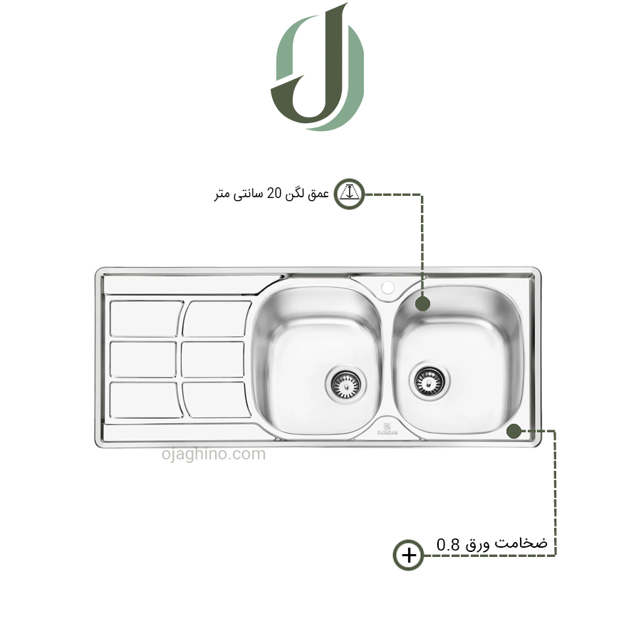 دارای دو لگن به عمق 20 سانتیمتر و ضخامت 0.8 میلیمتر میباشد.
