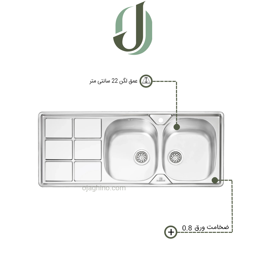 دارای دو لگن به عمق 22 سانتیمتر و ضخامت 0.8 میلیمتر میباشد.