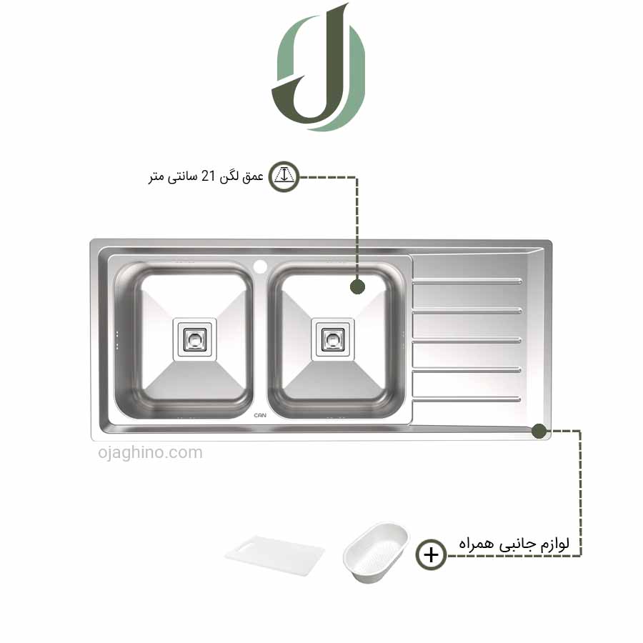دارای دو لگن بزرگ به عمق 21 سانتیمتر به ضخامت 0.8 میلیمتر و فانتزی است.