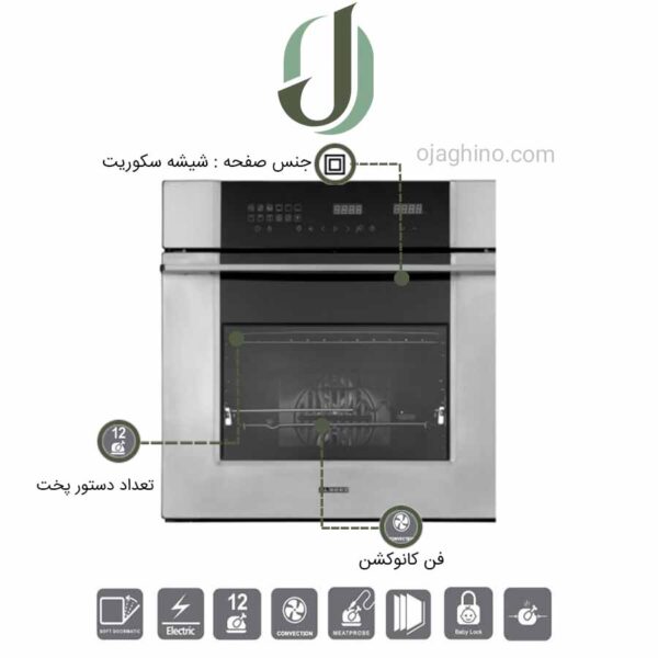 این فر دارای 13 برنامه پخت, فن کانوکشن,فن خنک کننده, یخ زدایی ,قفل کودک,گریل, ریل تلسکوپی میباشد