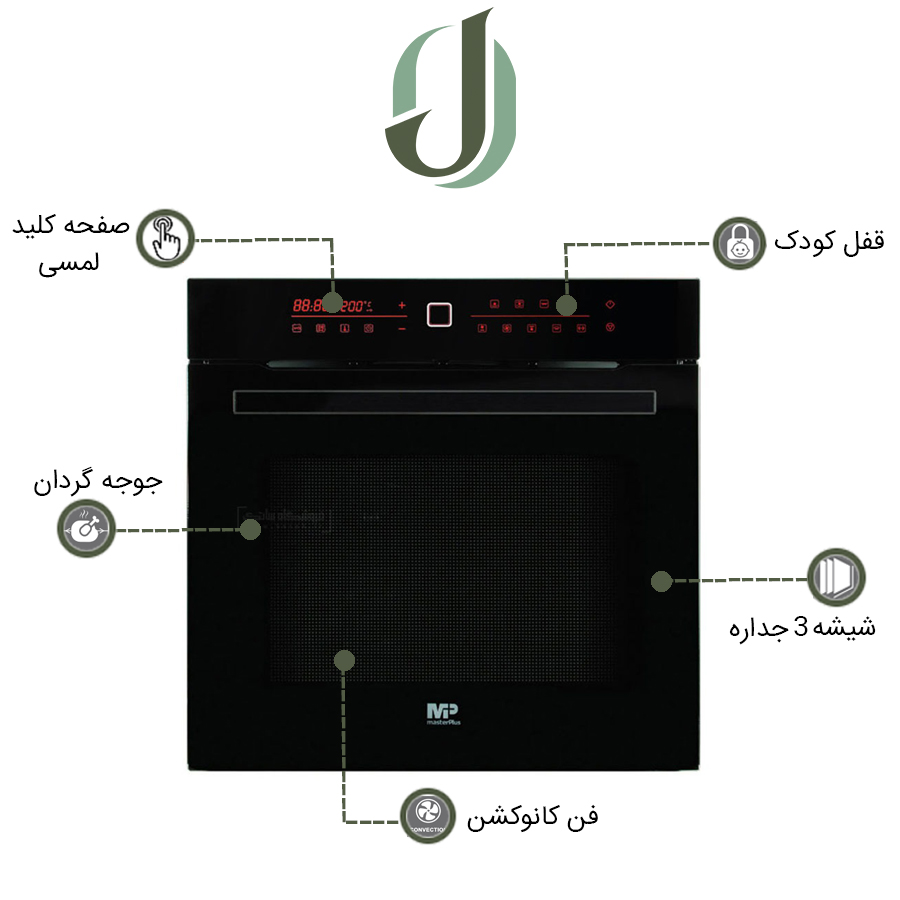 فر توکار مستر پلاس مدل O 302FC با نمای ظاهری شیشه مشکی یک جلوه فوق العاده زیبا میباشد.