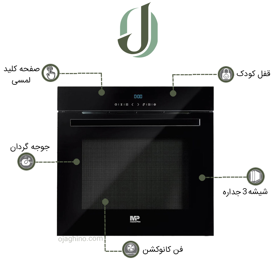 شیشه کار شده روی فر توکار مستر پلاس در مقابل حرارت و ضربه های نقطه ای کاملا مقاوم هست.