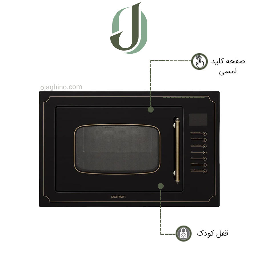 مایکروویو پرنیان استیل مدل PM 3301 با نمای ظاهری شیشه مشکی دارای یک جلوه فوق العاده زیبا میباشد.