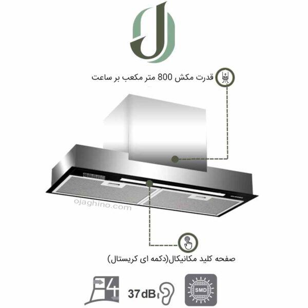 این هود دارای 3 دور موتور و قدرت مکش 600 مترمکعب بر ساعت میباشد.