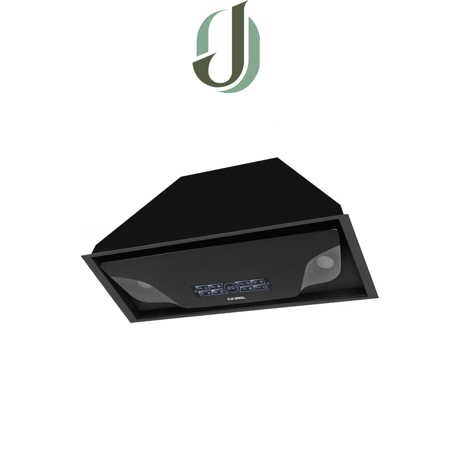 هود مخفی ایلیا استیل مدل آلما با نمای ظاهری شیشه مشکی دارای یک جلوه فوق العاده زیبا میباشد.