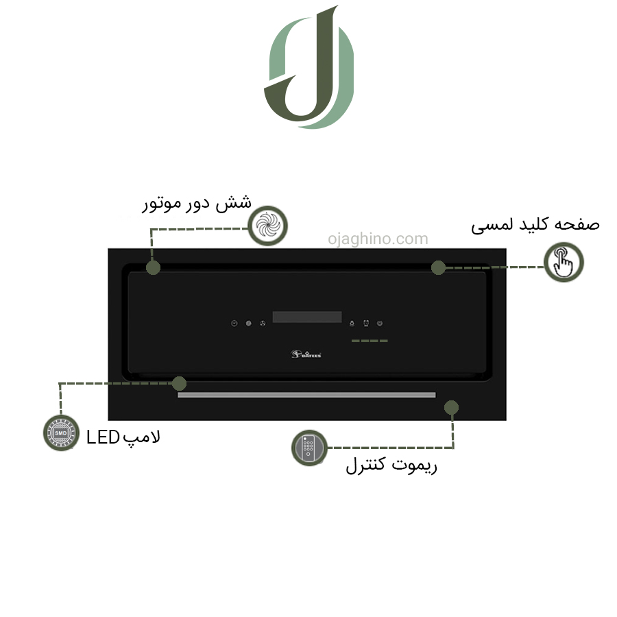 این هود دارای 700 تا 900 متر مکعب بر ساعت میباشد که صفحه کنترلی لمسی 6 کلید با افزایش و کاهش نوع درگی را به کاربر میدهد. دارای سنسورهای بو و حرارت، مجهز به سیستم راه اندازی و تغییر دور با اشاره دست و لامپ LED خطی و همچنین مجهز به موتور حلزونی از ورق گالوانیزه، پروانه از جنس الترامید شش دور میباشد.