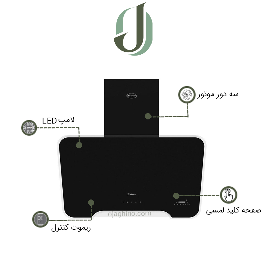 این هود دارای 700 تا 900 متر مکعب بر ساعت میباشد با صفحه کنترلی لمسی 4 کلید، پخش کننده موسیقی و رادیو / دارای بلوتوث و قابلیت اتصال USB، سنسورهای بو و حرارت، ریموت کنترل، مجهز به سیستم ایمنی و محافظ حرارتی (ترموگارد) و لامپ LED و همچنین مجهز به موتور حلزونی از ورق گالوانیزه، پروانه از جنس الترامید سه دور میباشد.