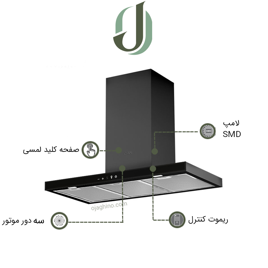 معرفی کلی هود کن تی شکل مدل 1470G مشکی :